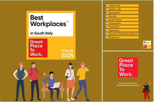 Le 10 aziende del Sud Italia dove si lavora meglio, ecco la classifica di GPTW : 1° posto per Halley SUD